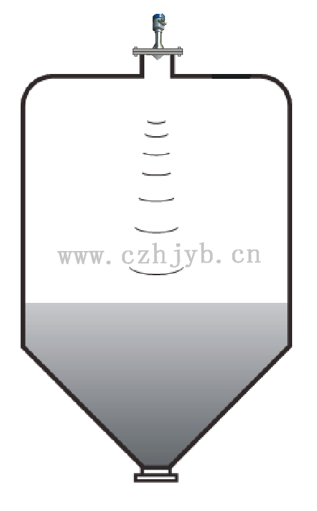 雷達(dá)物位天線發(fā)射較窄的微波脈沖,經(jīng)天線向下傳輸。微波接觸到被測介質(zhì)表面后被反射回來再次被天線系統(tǒng)接收,將信號(hào)傳輸給電子線路部分自動(dòng)轉(zhuǎn)換成物位信號(hào)(因?yàn)槲⒉▊鞑ニ俣葮O快,電磁波到達(dá)目標(biāo)并經(jīng)反射返回接收器這一來回所用的時(shí)間幾乎是瞬間的)。