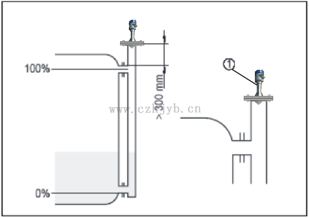 Ø 當(dāng)罐中有障礙物影響測量時(shí),要加裝反射板才能正常測量。