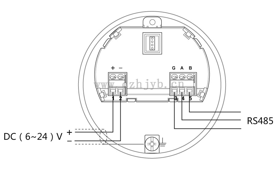 RS485/Modbus 供電電源和Modbus信號(hào)線分開各自分別使用一根兩芯屏蔽電纜線,具體供電電壓范圍參見技術(shù)數(shù)據(jù)。