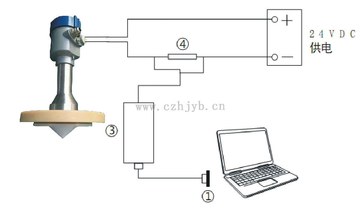 (4~20) mA/HART(四線制) 供電電源和電流信號(hào)分開,各自分別使用一根兩芯屏蔽電纜線。具體供電電壓范圍參見技術(shù)數(shù)據(jù)。